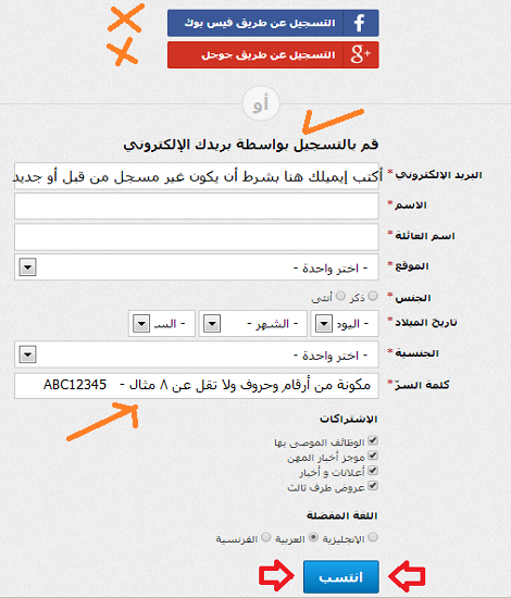 التقدم من خلال الموقع التالى فقط.